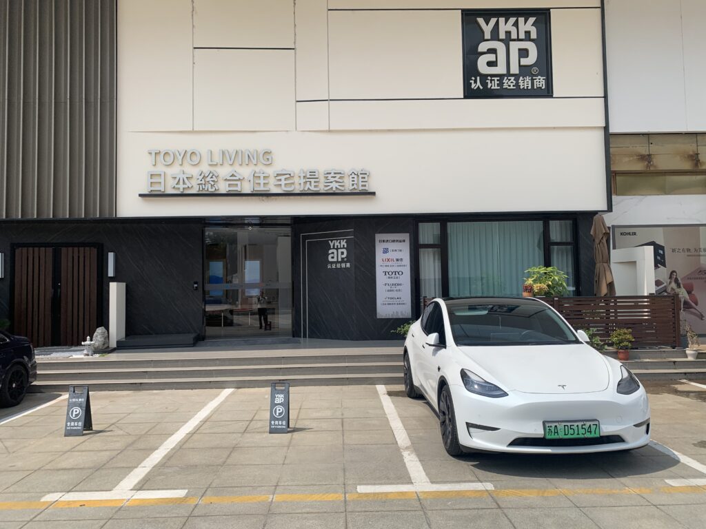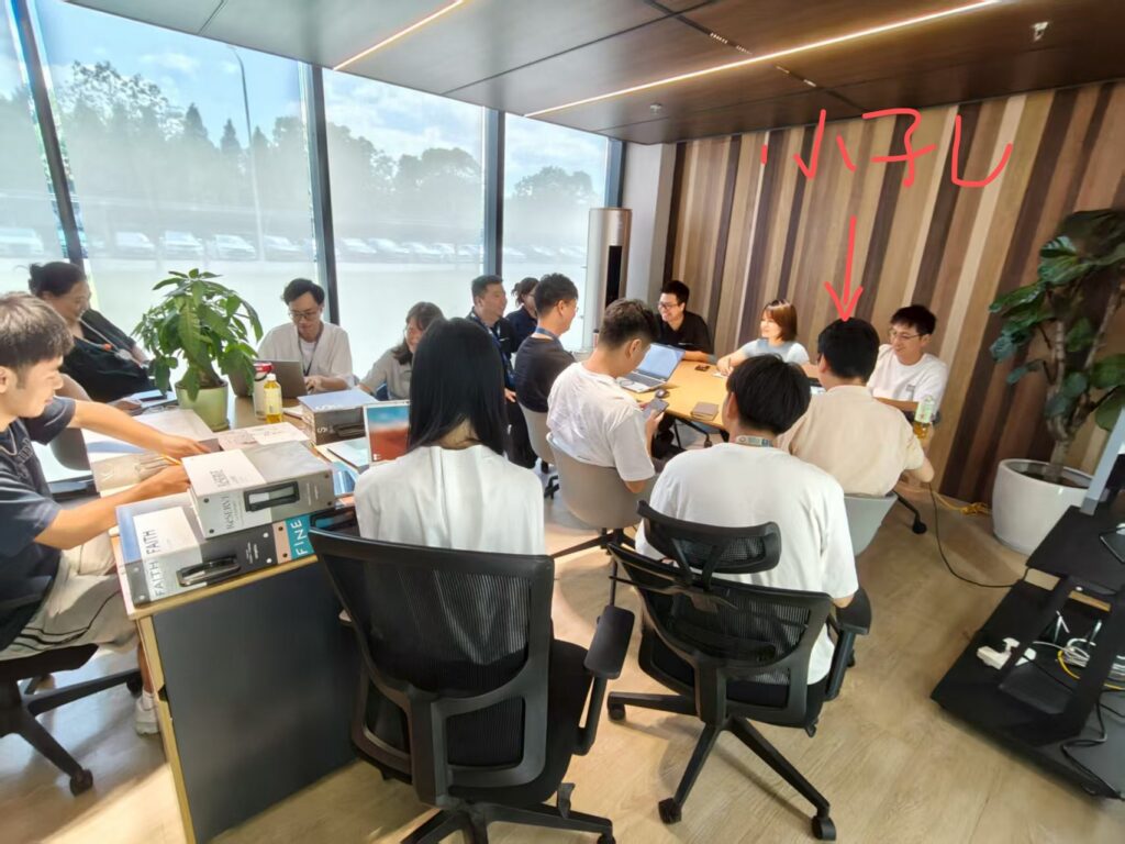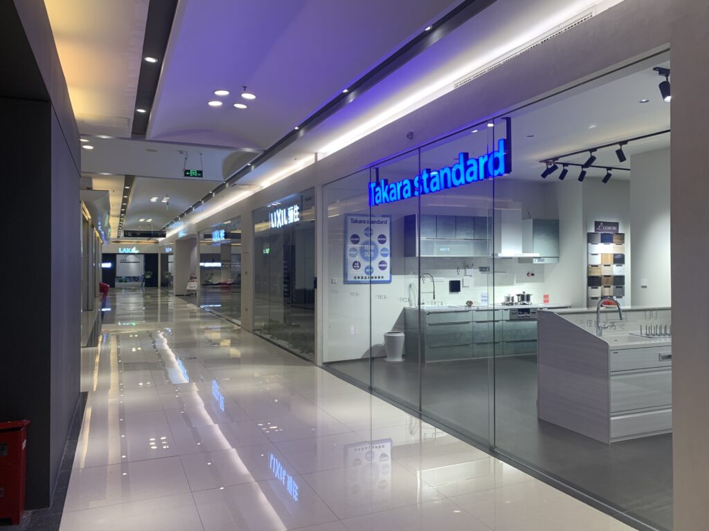 パナソニックの杭州工場での商品紹介会、パナソニックのインタリアのデザイナーや店員さんが参加。上の人に報告するために、自分がいるところに印を。