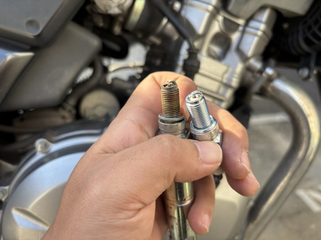 なんだか調子が悪くなってきたのでバイクのプラグ交換。本当はありえないんだろうけど、7万7千キロ走って一度も変えてなかった。こんなにも変わるのか、というほど快調に。
