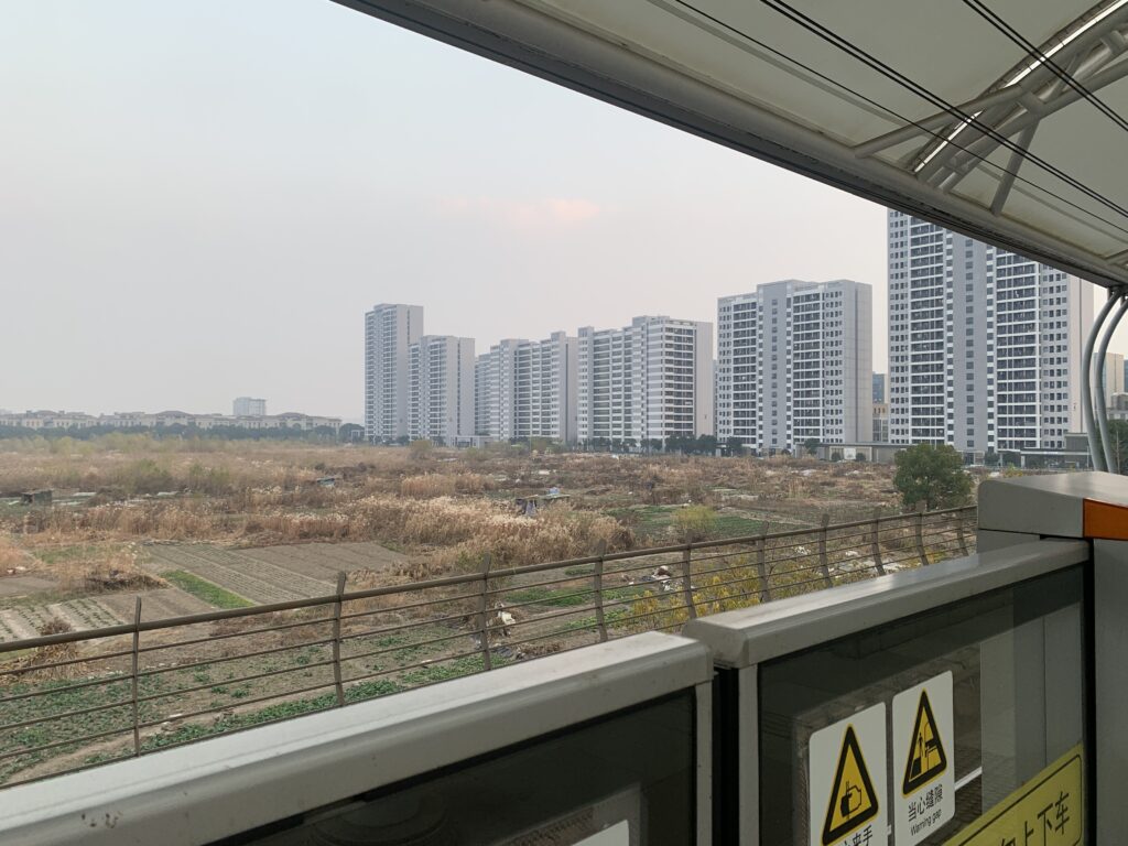 上海の都心からちょっと離れると、こういう光景が多い。開発が止まった土地がたまに見える。噂によると、土地を買った不動産会社が潰れて、開発が止めているらしいのが多いだが。